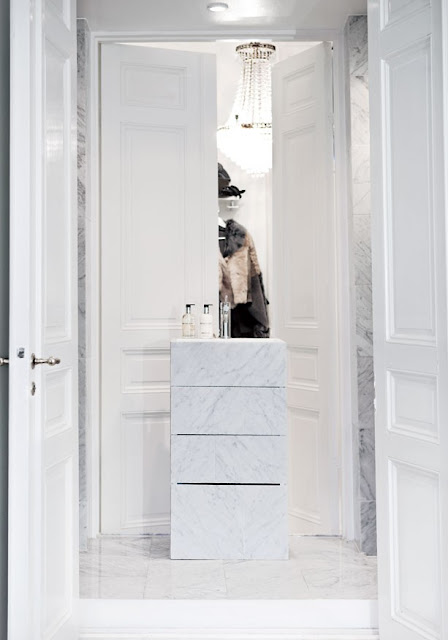 Elin Kling (Sweden´s number one fashion blogger) is showing her and her boyfriend Gustafs home. An appartment in the center of Stockholm, that Elin describes as "bohemian chic". Most of the furnitures are brought back from Gustaf´s former home in New York. I love their mix of scandinavian classics, piles of books and amazing selection of shoes.