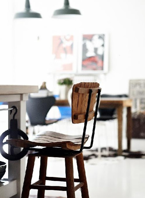 Dusty Deco is a vintage furniture shop in Stockholm, specialists on industrial design. This is the home of the shops owner. I love how their home reflects their buisness idea, they live wirh what they do. It´s a beautiful mix of unique pieces and clean scandinavian interior. I found this post at the Swedish blog; things I like, things I love, but the photos were originally taken for Elle Interiör.
